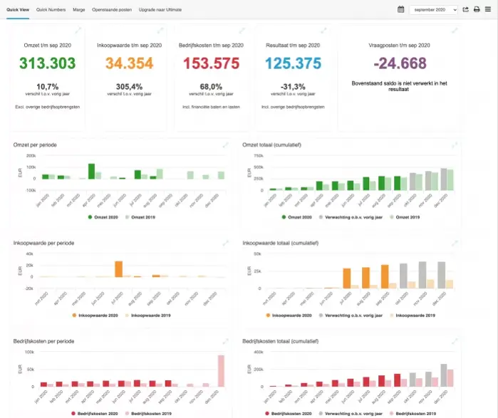 Even een check: hoe staan uw zaken ervoor? Wat is uw omzet? Hoeveel facturen staan er open? Welke klanten betalen wel of niet op tijd?